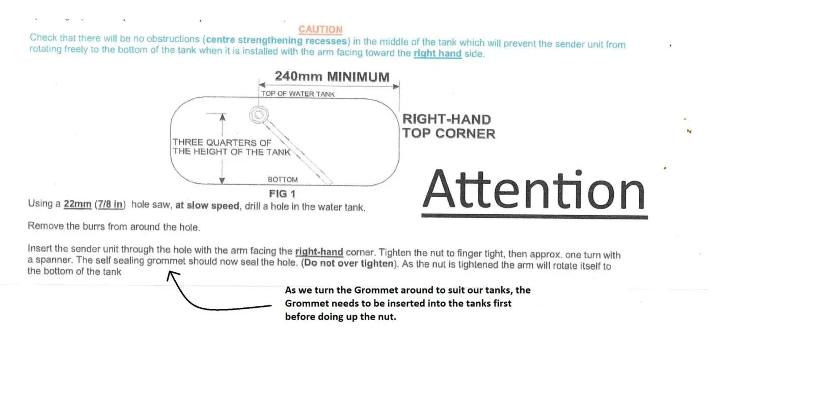 - Sender probe only requires one 22mm (7/8″) hole in the side of the tank