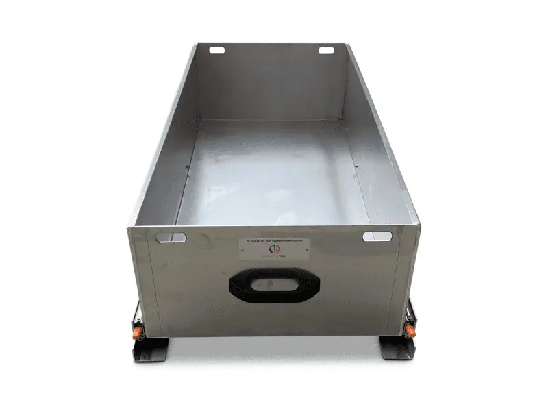Unlike many other metals used in caravan drawer construction, aluminium is neither magnetic nor prone to sparking so it’s both a safe and practical solution for storing a wide range of materials and items.
