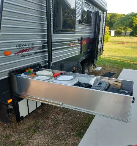 Nothing quite tops off a camping trip like a barbeque. Your slide out drawer offers the perfect nook in which to store an easily accessible barbeque from the outside. Designed to bear a significant amount of weight and with dimensions that can house a number of different sized barbeques, this excellent solution will make camp cooking a breeze.
